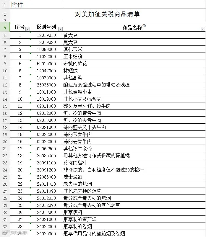 附表:对美加征关税商品清单