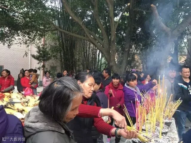伴有糖果、三茶五酒和香烛供奉在八仙桌上。