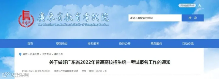 10月9日,广东省教育考试院印发《关于做好广东省2022年普通高校招生统一考试报名工作的通知》,明确考生报名分系统注册、网上报名和确认报名3个步骤,其中系统注册和网上报名的时间为2021年11月1日至10日,确认报名时间为11月6日至10日。
