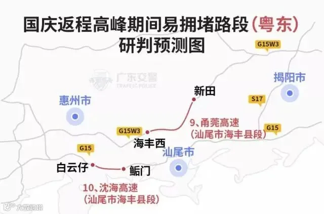 粤东地区返程绕行方案图。