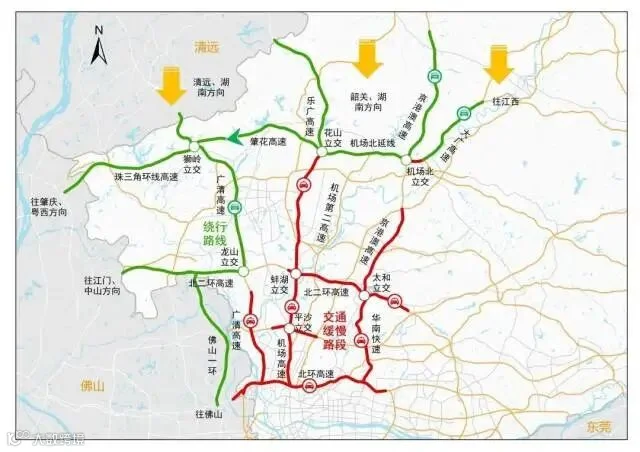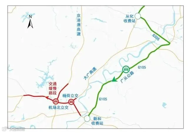 其中,为避开机场北立交、杨荷立交南行行车缓慢,建议大广高速返程市民在从化收费站经国道G355,通过G105绕行进入市内。