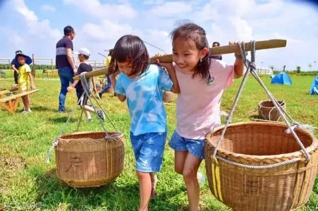 在广州增城世界幸福田园景区,孩子们体会劳作乐趣。