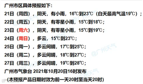 广州具体天气预报: