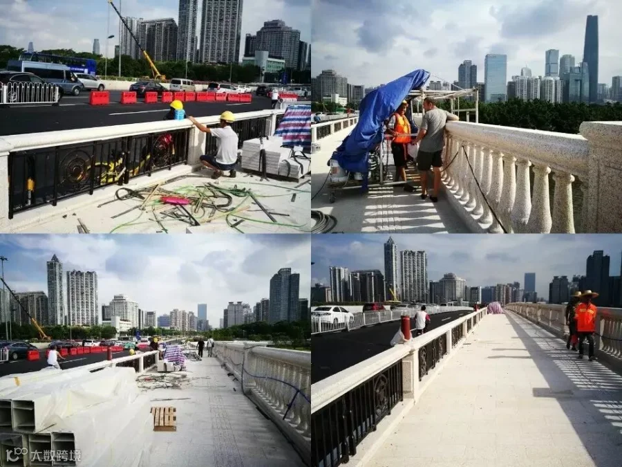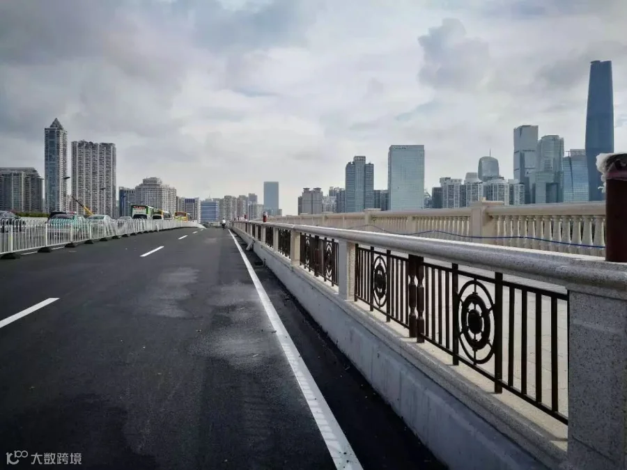 *2017年5月3日, 广州大桥旧桥完成维修工程,旧桥、新桥“合二为一”,桥面保持双向6车道。