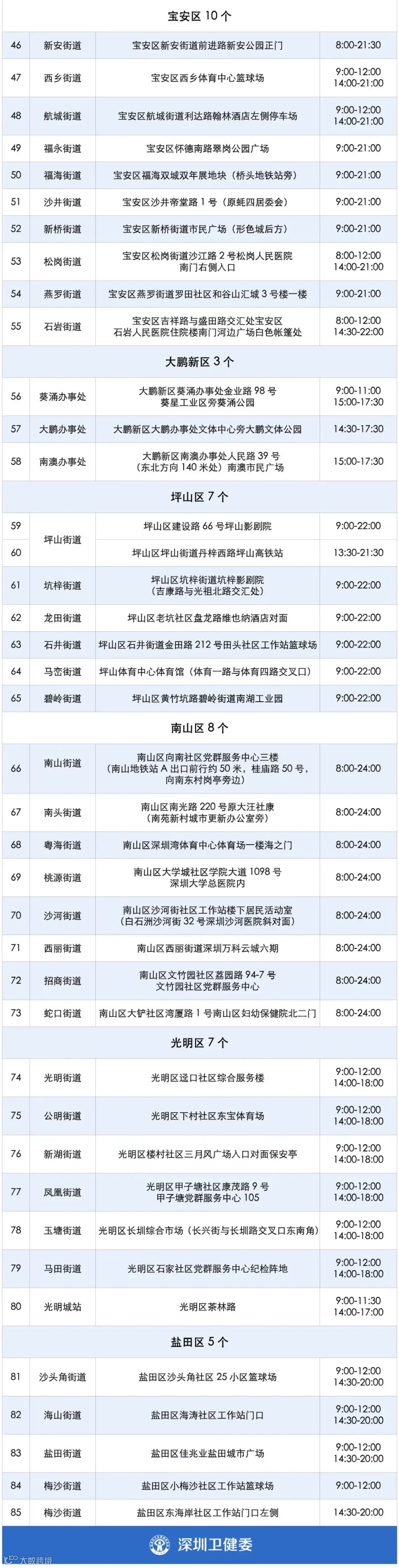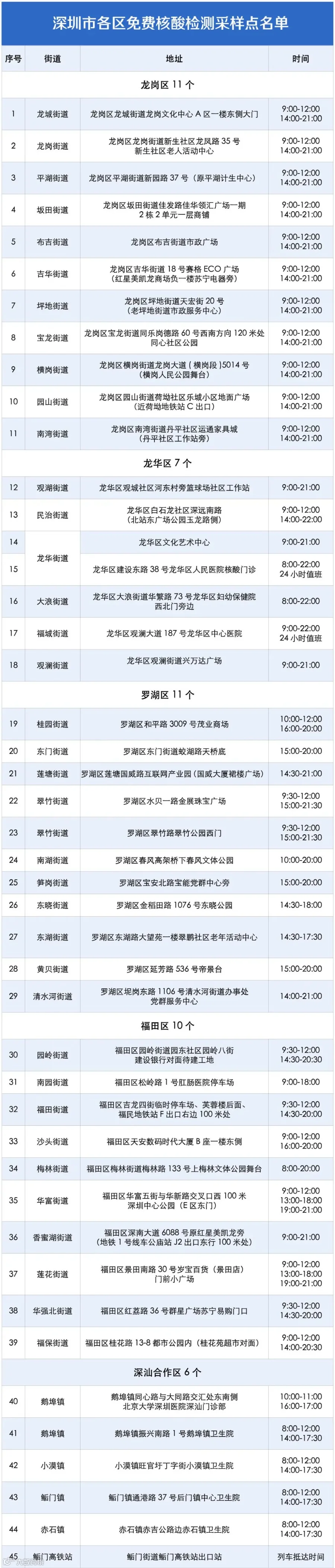 深圳85个核酸采样点,可以给返深人员提供测核酸服务。附上具体名单前,先给大家划个重点——
