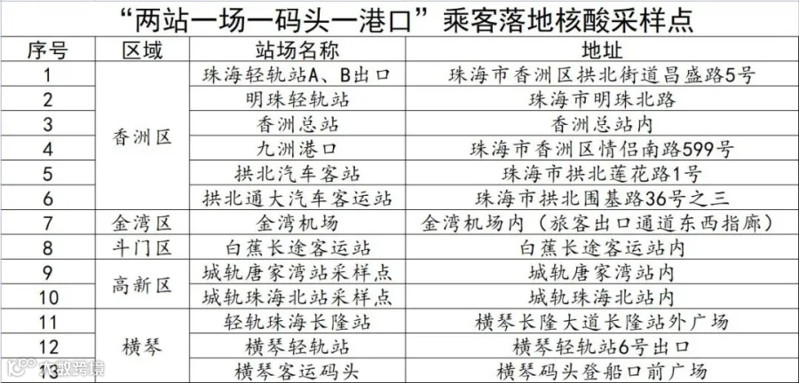 记者从珠海市卫生健康局了解到,考虑到今年国庆假期、中国航展叠加造成的人流量剧增等因素,为进一步巩固我市得来不易的疫情防控稳定形势,我市将强化和延续部分航展期间的核酸检测筛查措施,其中“两站一场一港口”落地核酸检测实施期限延长至10月14日24时。