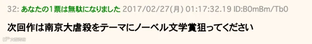 ”下次就写个以‘南京大屠杀’为主题的作品去争取拿诺贝尔文学奖吧。“