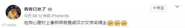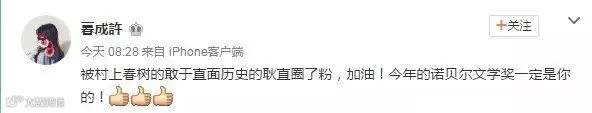 中国网友纷纷表示:真希望村上能获诺贝尔奖啊……