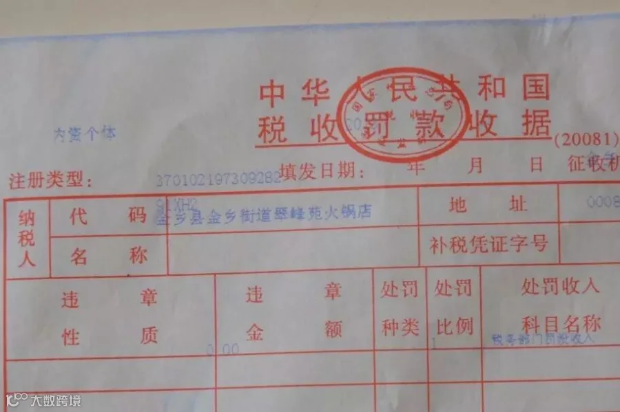 地税罚款收据,资料图。