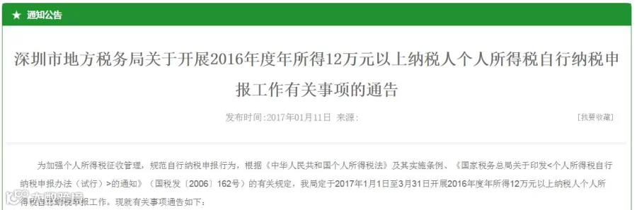 2016年度取得的各项所得合计数额达到12万元及以上的纳税人请自行办理个人所得税纳税申报。无论你是否已足额缴纳个人所得税,都要在2017年1月1日至3月31日内向主管地方税务机关办理个人所得税纳税申报,不会重复征税。