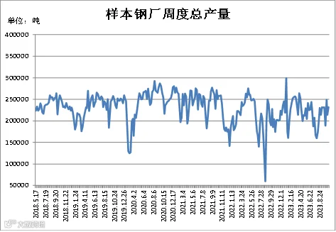 (10月13日-10月19日)四川省钢材流通协会对四家样本钢厂关于建材产量统计数据显示,本周A、B、C、D较上周分别增加1000吨、2084.09吨、14000吨、1000吨。四家样本钢厂总产量为232053吨,周环比增加18084吨。