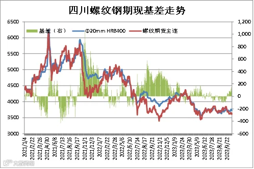 统计数据显示,成都建筑钢材现货价格与上期所螺纹钢期货价格存较强联动性,基差正常波动区间为-100-300元/吨。本期现货价格强于期货价格,10月20日成都Φ20mm HRB400现货价为3730元/吨,RB2401合约价格为3610元/吨,基差为120元/吨,周环比+40元/吨。(备注:基差=现货-期货)