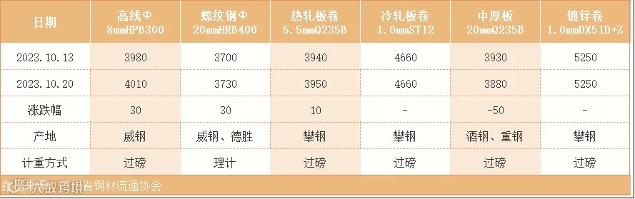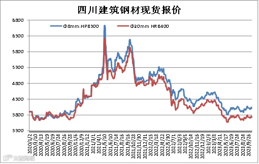据四川省钢材流通协会对成都现货市场监测显示,本期建筑钢材价格先扬后抑,上半周表现坚挺由于炉料走高提升炼钢成本,钢厂和贸易商挺价意愿较强,但后半周随着期螺回调,市场情绪受挫,钢价承压调整。10月20日,成都地区Φ20mm HRB400螺纹钢价格为3730元/吨,较10月13日涨30元/吨;Φ8mm HPB300高线价格为4010元/吨,涨30元/吨。