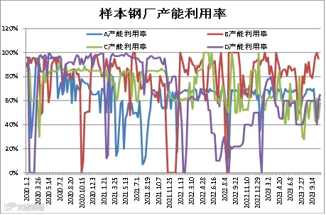 (10月13日-10月19日)四川省钢材流通协会对四家样本钢厂关于建材产能利用率统计数据显示,A、C、D较上周分别提升1%、13%、5%;B较上周下调5.26%。