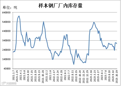 据四川省钢材流通协会对四家样本钢厂关于建材厂内库存统计数据显示,截止10月19日,A、B、D较上周分别减少8000吨、3757.902吨、3000吨;C较上周增加4000吨。四家样本钢厂厂内总库存量为305482吨,周环比减少10758吨。