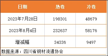 据四川省钢材流通协会统计,本周成都地区样本库房中热卷库存量为232637吨,较上周增加34336吨。冷卷库存量为58176吨,较上周增加9497吨。