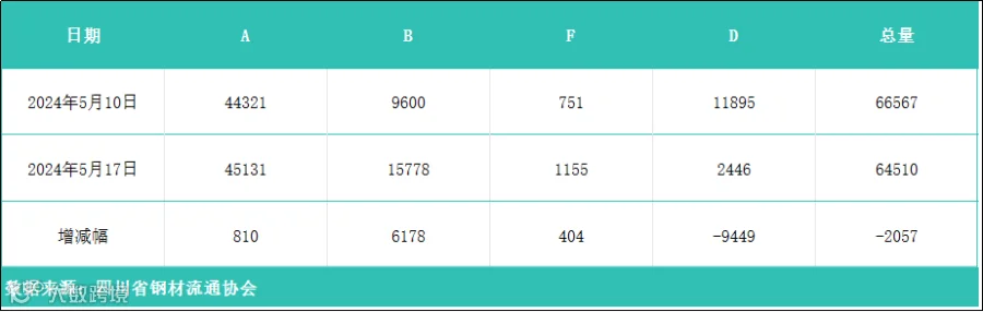 以上表单中的数据完全由川钢协信息统计部人员客观采集自相关钢厂、库房和贸易企业,川钢协力求数据及内容的准确、客观,但不能保证其完整性或准确性;本数据简报仅供浏览者参考,并不构成建议,川钢协不对该数据、简报及使用该数据和简报所导致的结果承担责任。