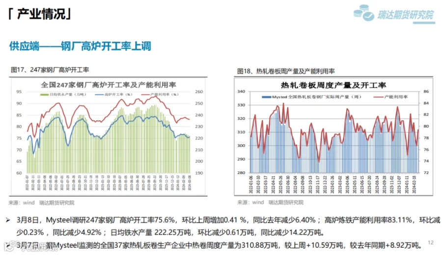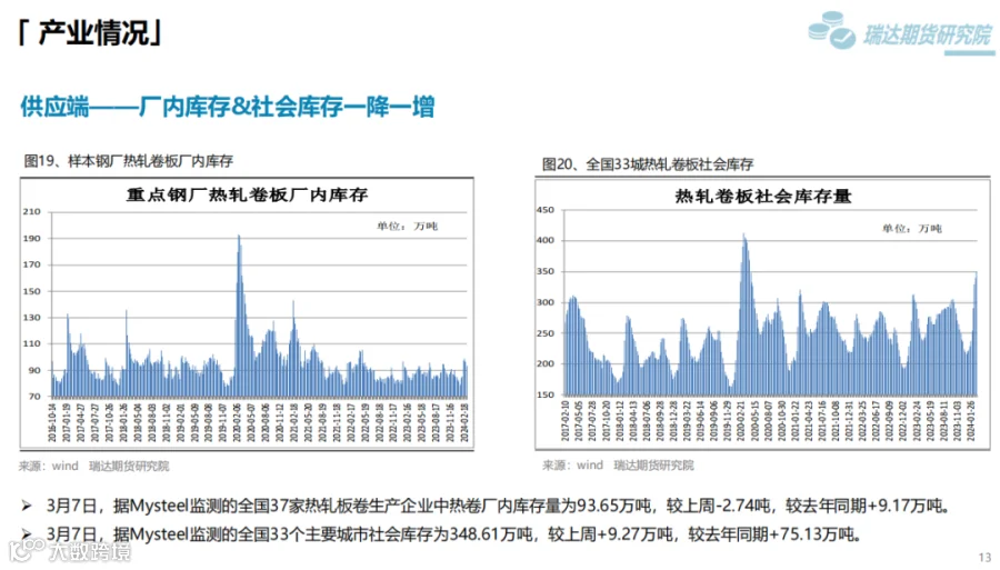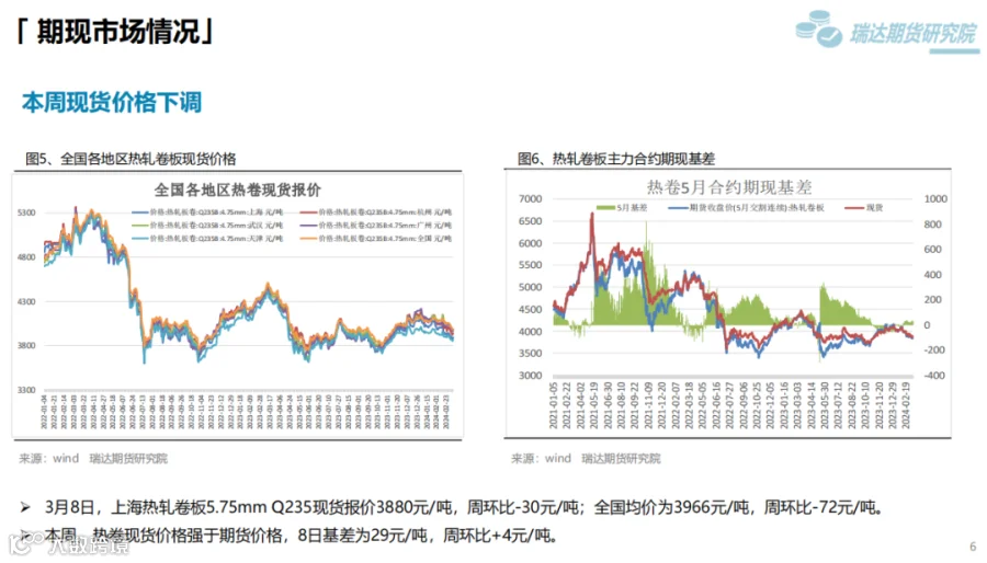 本周(3.1-3.8)热卷价格继续下行。钢厂利润收缩向上挤压炉料,炼钢成本支撑下滑,另外宏观面利好影响边际减弱,热卷价格随着库存量增加,逐步走弱。 下周(3.8-3.15)供应端、热卷周度产量由降转增,产能利用率上调至80%附近,整体上产量回升较快。需求端,下游复产增多,采购量有所增加,但力度相对有限,库存量延续小幅提升。最后,关注宏观面对市场情绪影响。