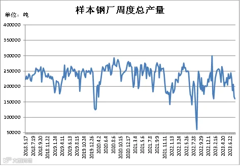 (7月28日-8月3日)四川省钢材流通协会对四家样本钢厂关于建材产量统计数据显示,本周A、B较上周分别增加8000吨、2525.42吨;C、D较上周减少16000吨、1400吨。四家样本钢厂总产量为159754吨,周环比减少6875吨。