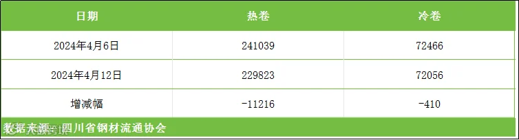 以上表单中的数据完全由川钢协信息统计部人员客观采集自相关钢厂、库房和贸易企业,川钢协力求数据及内容的准确、客观,但不能保证其完整性或准确性;本数据简报仅供浏览者参考,并不构成建议,川钢协不对该数据、简报及使用该数据和简报所导致的结果承担责任。