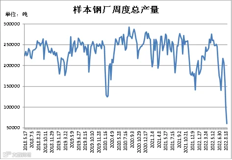 (8月19日-8月25日)四川省钢材流通协会对四家样本钢厂关于建材产量统计数据显示,本周A、B、C、D较上周分别减少21000吨、11506.08吨、3000吨、5500吨。四家样本钢厂总产量为60000吨,周环比减少41006吨。