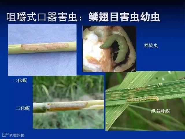 蝗虫、黏虫、棉铃虫、叶甲、卷夜蛾、螟蛾等 |