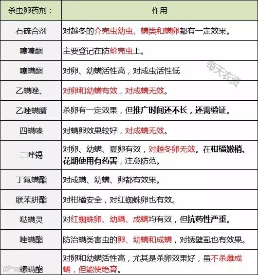 我们汇总了一些常用的防治卵螨的药剂,供大家参考: