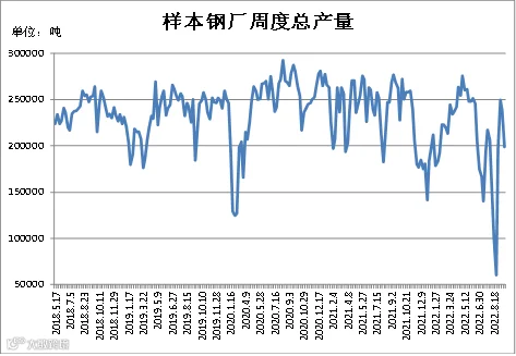 (9月16日-9月22日)四川省钢材流通协会对四家样本钢厂关于建材产量统计数据显示,本周A、B、D较上周分别增加2000吨、2717.85吨、1000吨;C较上周减少45000吨。四家样本钢厂总产量为198900吨,周环比减少39282吨。
