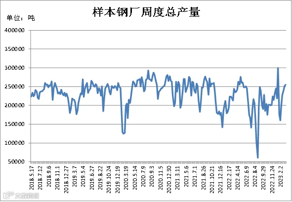 (3.3—3.10)四川省钢材流通协会对四家样本钢厂关于建材产量统计数据显示,本周B、C较上周分别增加1994.98吨、5000吨;A、D较上周分别减少3000吨、700吨。四家样本钢厂总产量为255082吨,周环比增加3295吨。