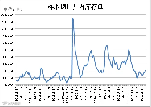 4、据中钢协数据显示,2022年4月下旬,重点钢企粗钢日均产量235.87万吨,环比增长5.50%;钢材库存量1808.87万吨,比上一旬减少157.85万吨,降低8.03%。