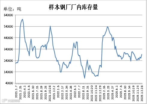 据四川省钢材流通协会对四家样本钢厂关于建材厂内库存统计数据显示,截止12月28日,B、C、D较上周分别增加10014.367吨、10000吨、13000吨;A较上周减少1500吨。四家样本钢厂厂内总库存量为292514吨,周环比增加31514吨。
