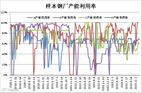 (12月8日-12月14日)四川省钢材流通协会对四家样本钢厂关于建材产能利用率统计数据显示,D较上周提升2%;C较上周下调4&;A、B较上周分别持平。