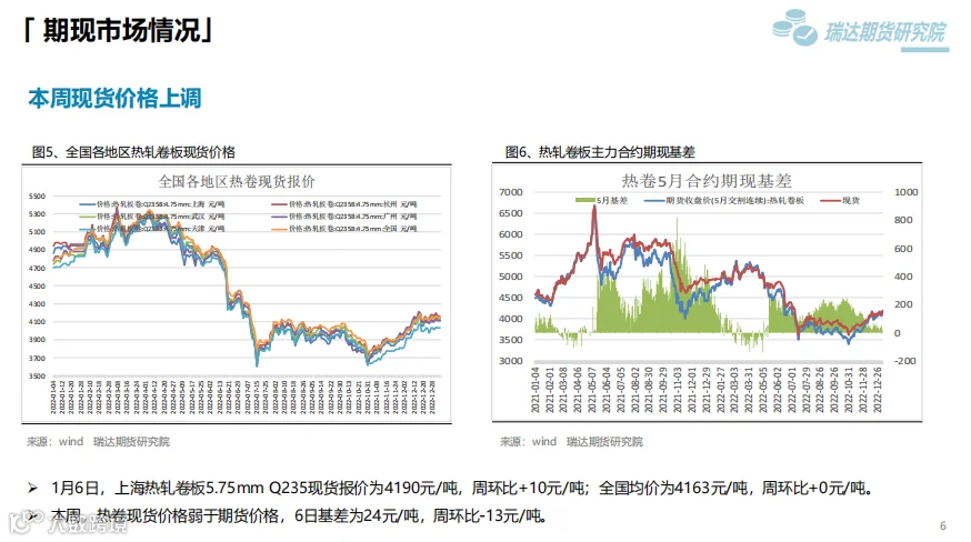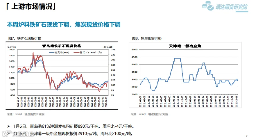 本周(12.30-1.6)热卷价格先抑后扬。国际油价走弱拖累大宗商品价格,另外目前传统需求淡季特征依旧明显,终端需求边际改善乏力一度拖累热卷价格走弱。直至周五随着央行、银保监会发布通知, 决定建立首套住房贷款利率政策动态调整机制。新建商品住宅销售价格环比和同比连续3个月均下降的城市,可阶段性维持、下调或取消当地首套住房贷款利率政策下限,推动黑色系期货全线上行。