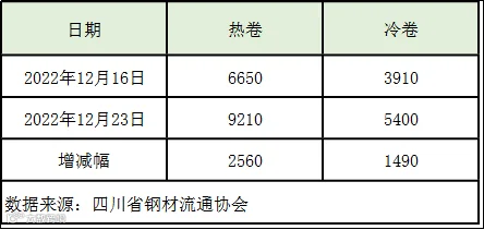 本周四川省钢材流通协会对样本钢厂关于板材出货量统计数据显示,热卷出货量9210吨,较上周减少增加2560吨。冷卷出货量5400吨,较上周增加1490吨。