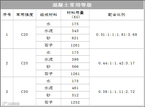 混凝土配合比是指混凝土中各组成材料(水泥、水、砂、石)之间的比例关系。有两种表示方法:一种是以1立方米混凝土中各种材料用量,如水泥300千克,水180千克,砂690千克,石子1260千克;另一种是用单位质量的水泥与各种材料用量的比值及混凝土的水灰比来表示,例如前例可写成:C:S:G=1:2.3:4.2,W/C=0.6。