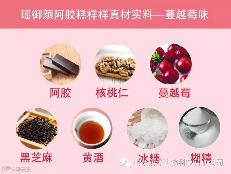 功效有养血安神,健脾益胃,补肾益精,养肝护肝,明目补血,降脂减压。 3、蔓越莓口味:秉承经典、创新添加,严格选材,精心熬制,由上等东阿阿胶、黑芝麻、核桃仁、蔓越莓、黄酒、冰糖、糊精秘制配方纯手工制作而成。