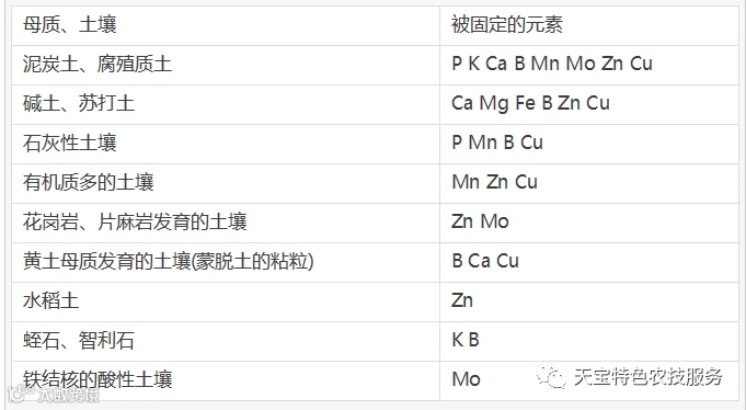 即营养元素被无机物或有机物所吸附固定,而不能为根系吸收。各元素的吸附固定与土壤或成土母质有密切关系。