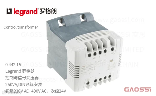 高思(GAOSSI®)专业供应法国罗格朗(Legrand)品牌控制与信号变压器(control, signalling and safety isolation transformers open type single phase)0442系列044215(250VA, 230~400V ac输入,24V ac输出)等产品,应用在汽车、光伏、机床、冲床/压力机、车辆、钢铁、建筑、机械设备、电气设备、电子、通讯、医疗器械等行业。