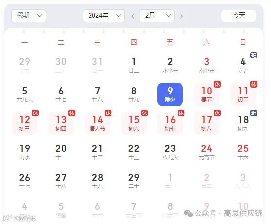 根据国务院办公厅《关于2024年部分节假日安排的通知》和我司实际情况,高思春节放假时间安排如下: