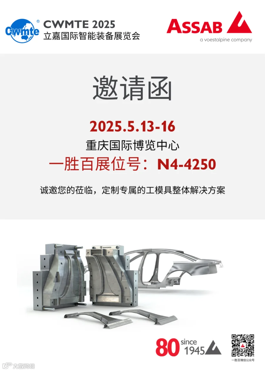 一胜百携前沿工模具技术与材料亮相重庆!本次展会,一胜百将带来热成型钢解决方案、专为电动车量身定制的压铸解决方案、为压铸模具提供抗高温耐冲蚀保护的一胜百激光熔覆技术、高压压铸的增材制造技术,以及提升生产效率的PVD涂层技术等。凭借创新技术,一胜百致力于推动智能装备制造业迈向高效未来。
