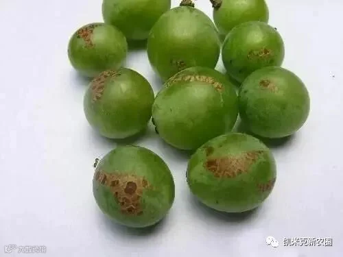 花器受害,初为白斑,后期变褐色,逐渐枯萎。果实受害,会产生疤痕,疤痕随果实膨大而扩展,呈现不同形状、不同程度的木栓化,严重时造成落果。