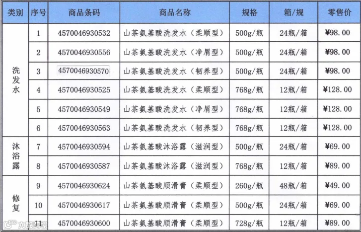 浅香山茶氨基酸系列价格表