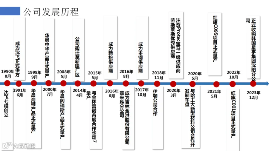 公司从1990年成立至今已历经34年,1991年成为沈飞正式供应商后,先后与华晨中华、宝马、新松等大企业合作,直到2023年12月转接韩国星宇。三十多年的时间,公司从初创的厂房搬迁到铁西经济开发区,扩大生产面积,开设分厂,一路走来经历过的风雨无数,也造就了鑫来胜的卓越成绩,我们也从二级供应商向一级供应商转变,公司领导不断探索新的业务领域,带领公司员工共同努力,共同发展,创造更好的生活。