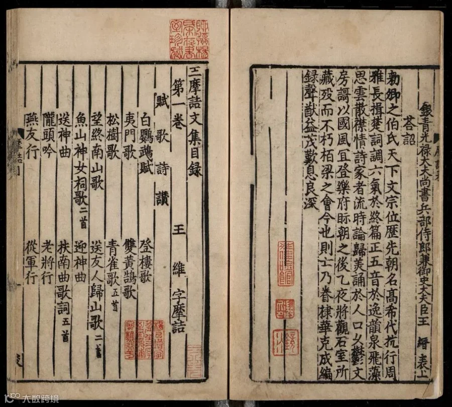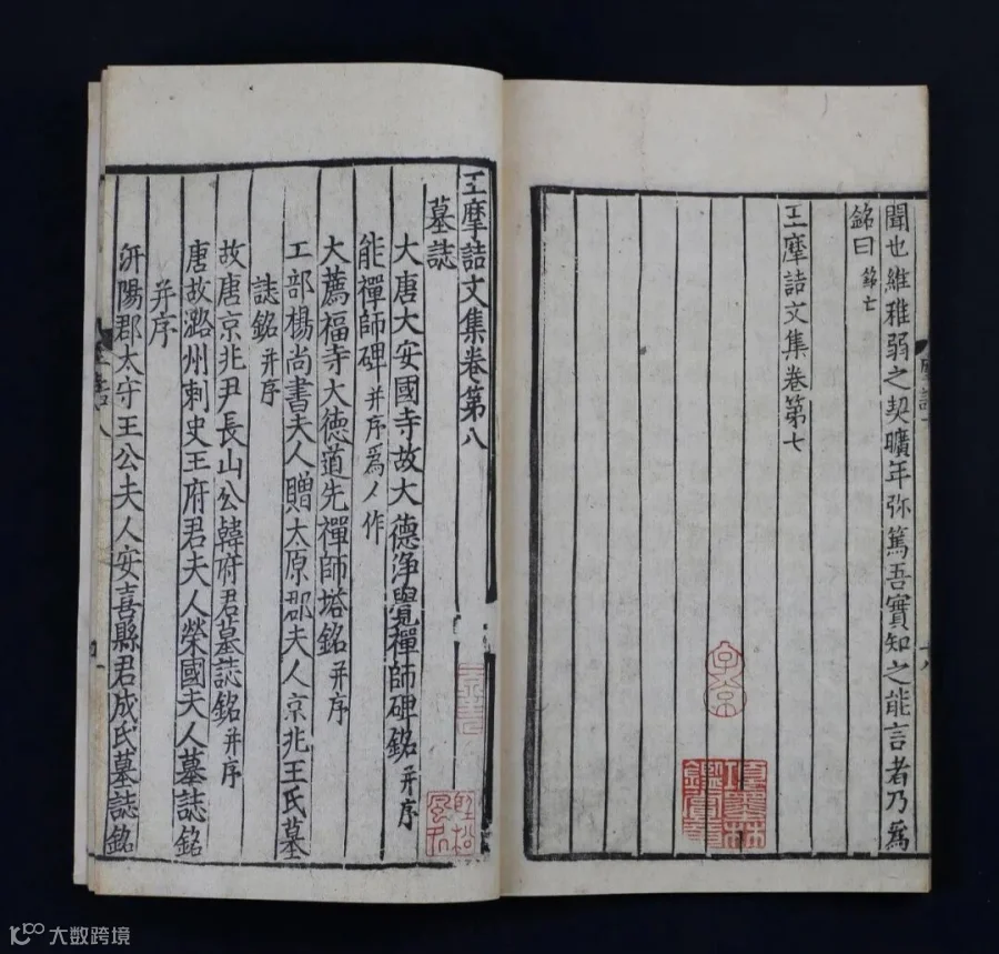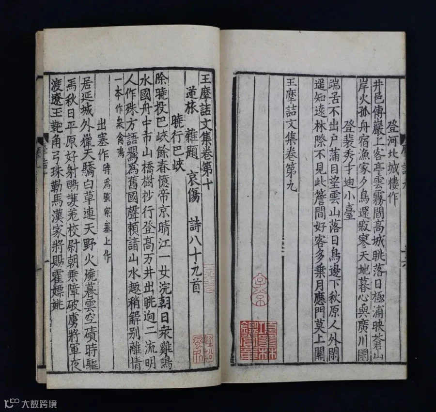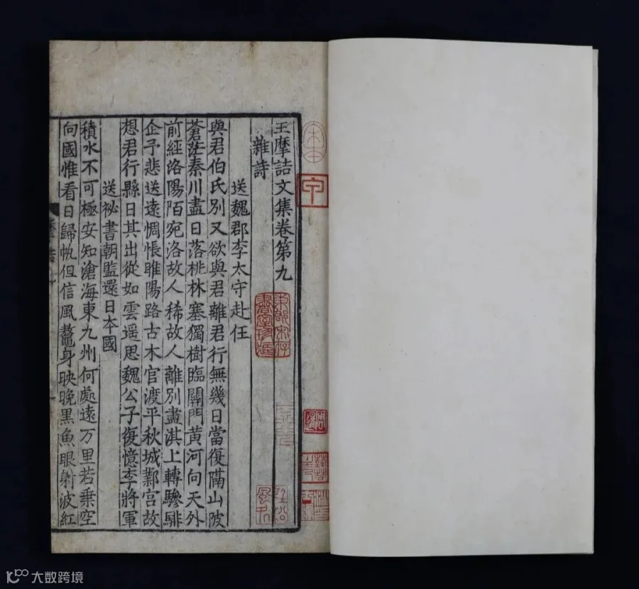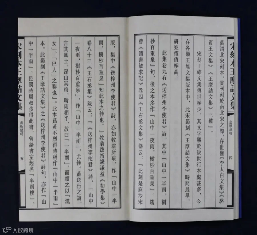 宋刻王维文集传世极少,其文字胜于后世行本处甚多,今存各类王维文集版本中,此宋蜀刻《王摩诘文集》时间最早,研究价值极高。