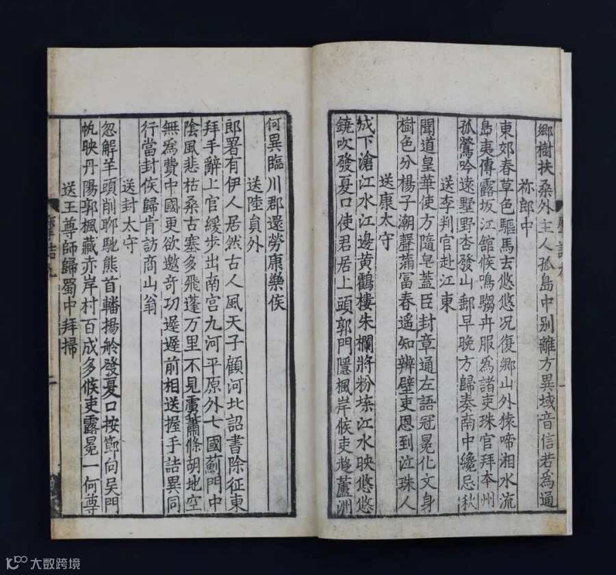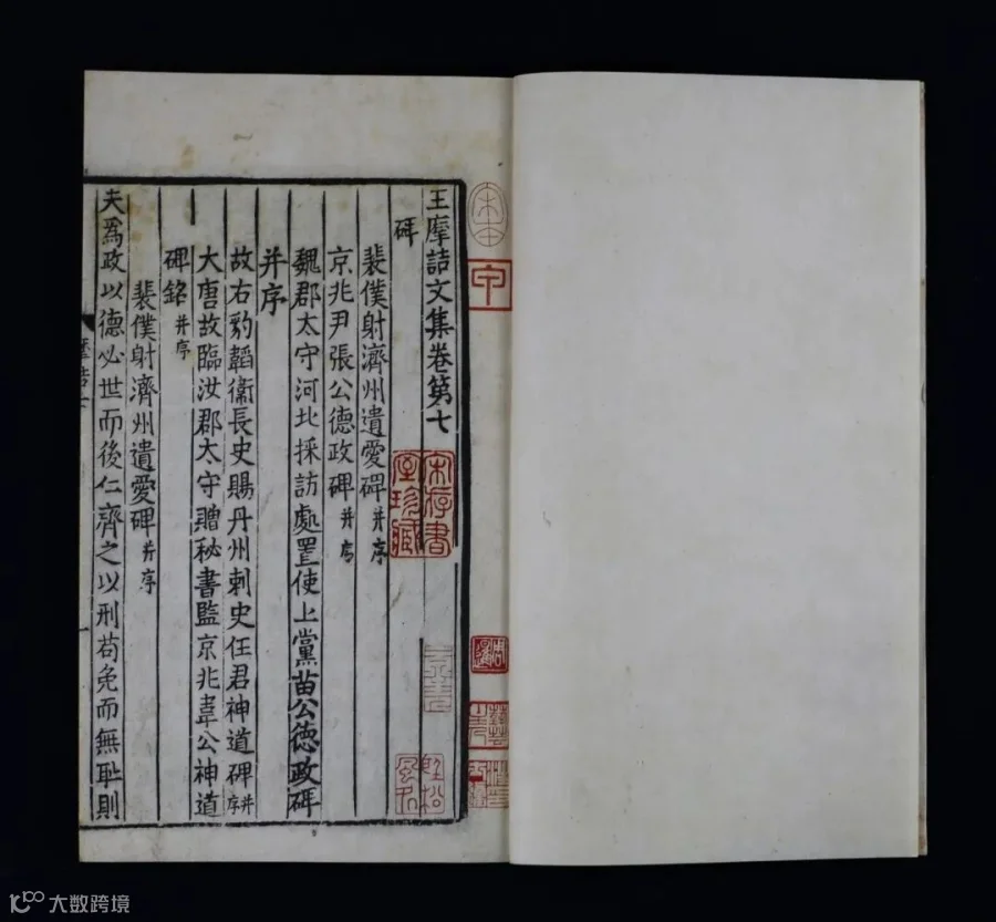 宋代四川地区曾刊刻大量唐人文集,其内容多源于古本,惜传本罕见,历来藏书家都极其重视。《中国版刻图录》称“传世蜀本唐集分为十一行本和十二行本两个系统,其十一行蜀本,旧谓北宋刻本,实刊刻于南北宋之际,存世仅《李太白文集》《骆宾王文集》《王摩诘文集》三种”。