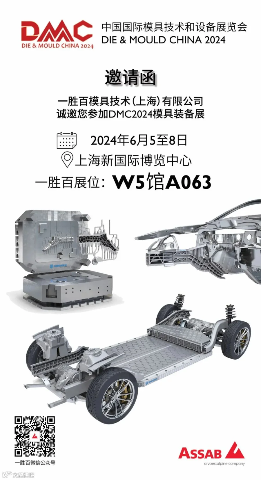 DMC作为模具行业的盛会,将于2024年6月5日至8日在上海新国际博览中心举行,我们诚挚地邀请您莅临一胜百展位W5馆A063,共同探讨模具技术的创新与发展!我们期待与您共同探讨一胜百高性能模具钢材料在各类模具应用中的卓越表现,感受增材制造技术的无限可能,以及热处理服务和表面处理服务带来的品质提升。