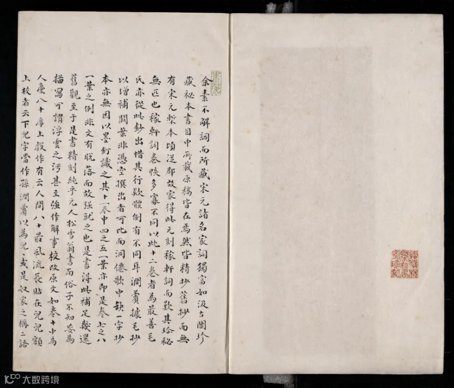 本书有清黄丕烈、顾广圻跋以及陶梁、瞿中溶、汪鸣銮、王鹏运、许玉瑑等名家题款。黄跋称:余素不解词,而所藏宋元诸名家词独富,如《汲古阁珍藏秘本书目》中所载原稿皆在焉。然皆精抄旧抄,而无有宋元椠本。顷从郡故家得此元刻《稼轩词》,而叹其珍秘无匹也。《稼轩词》卷帙多寡不同,以此十二卷者为最善,毛氏亦从此钞出,惜其行欵、体例有不同耳。……至于是书精刻,纯乎元人松雪翁书,而俗子不知,妄为描写,可谓浮云之污。对此本有很高的评价。
