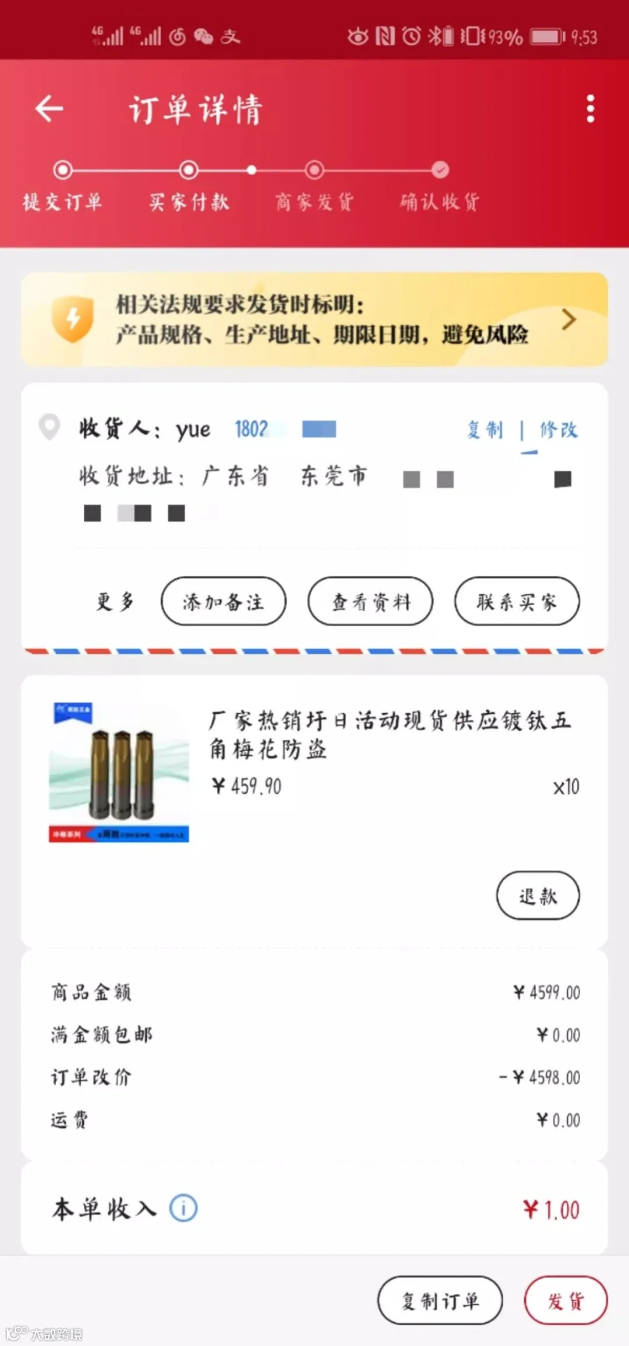 东莞市李女士获得本次免单名额