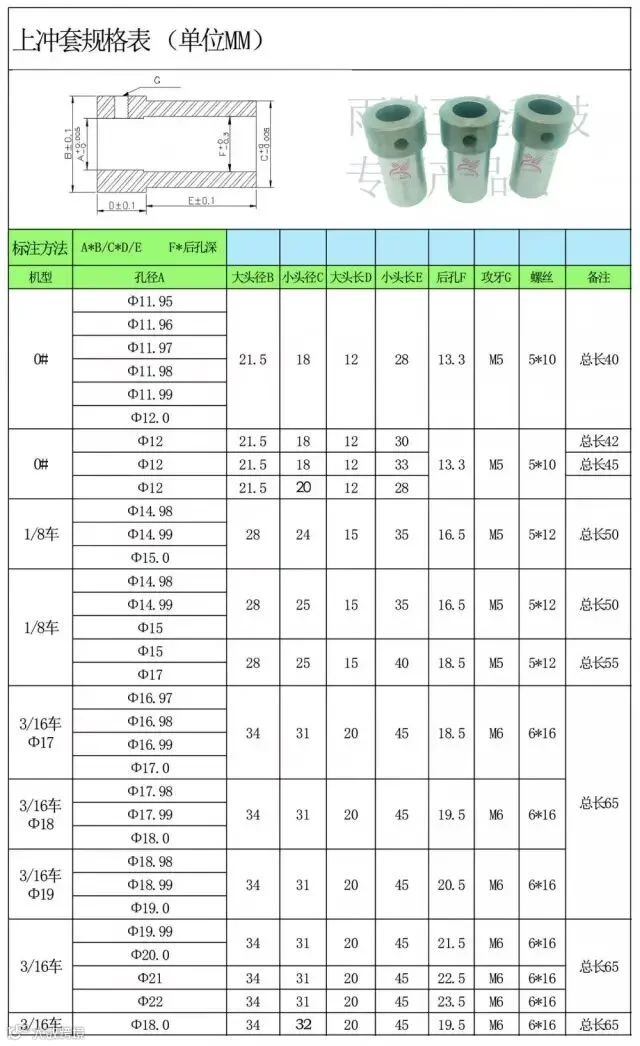 螺丝机上冲套:0#机、1/8车、3/16车