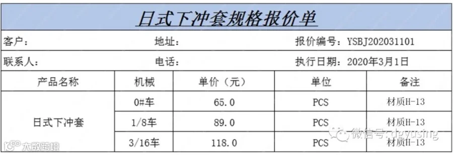 日式下冲套参数表